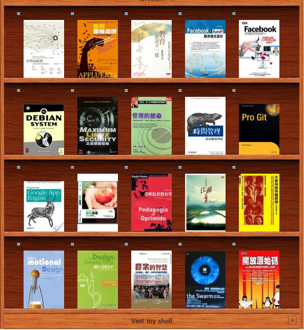 再過20分鐘後回神過來,卻又覺得把這些書一放上來,那些引誘人的android / iphone、看來很潮的網路和科技都到第二頁了,可真是囧。夥伴們請別打我...