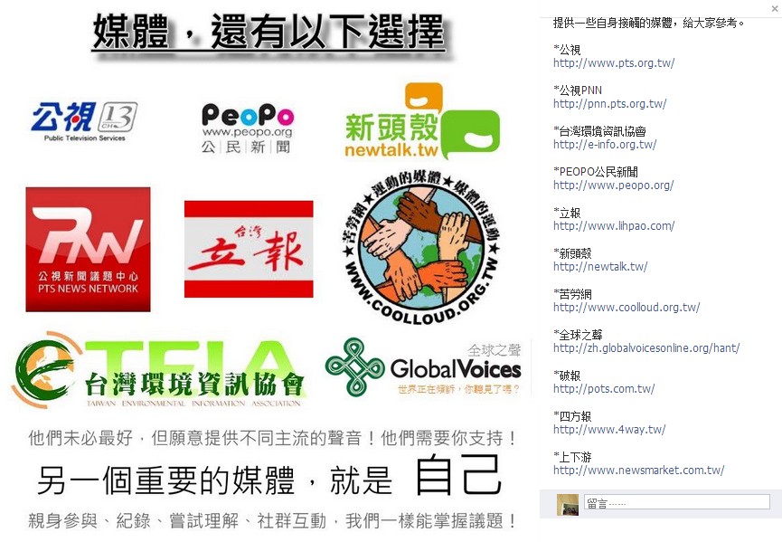 今天不小心在Facebook上看到有人蒐集的獨立/公民媒體清單,沒想到我仔細算一算,居然有3個是NETivism成員完成的,4個用Drupal,2個沒做到擦肩而過...1個在國外的做不到,1個是電視台...