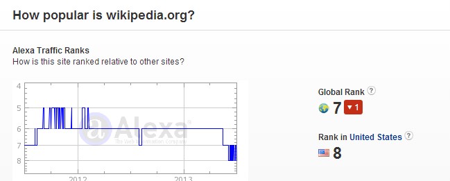 它到底有多受歡迎呢?世界上的網站成千上萬,而Wikipedia的全球排名在Alexa.com的統計中,可是高達世界排名第七的位置!