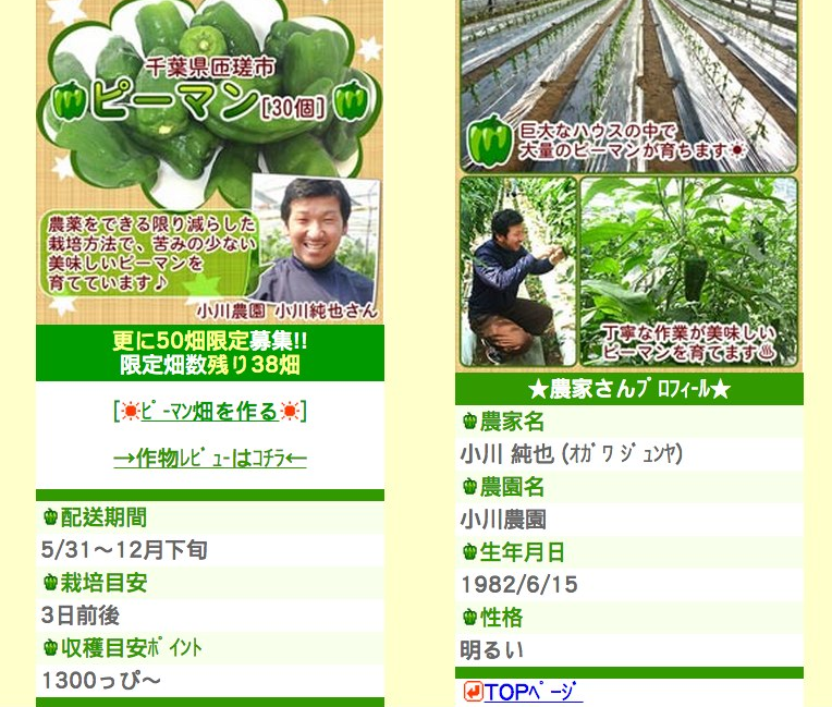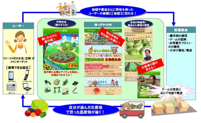 記得臉書開始風靡台灣的時候,是從開心農場遊戲開始的,看著自己種的菜慢慢長大,沒有一個人開心不起來。如果在開心農場採收的蔬菜、水果,真的可以在現實世界拿來用,如此一來不是「好吃、新奇又好玩」嗎?現在就有一款這樣的手機養成遊戲喔!只可惜是日本限定的,這款遊戲名為「畑っぴ(念“哈他給皮”,“畑”就是“田”的意思[0])」,裡面種植的蔬菜大約三到七天就可收成,更棒的是,收成之後隔天同樣的蔬菜就免費送到你家囉!除了蔬菜、水果之外,也能養雞、牛來取得雞肉、乳製品。現在這款遊戲廣受日本的女性歡迎,兩萬名活躍玩家中有近九成都是家庭主婦。[1][2]