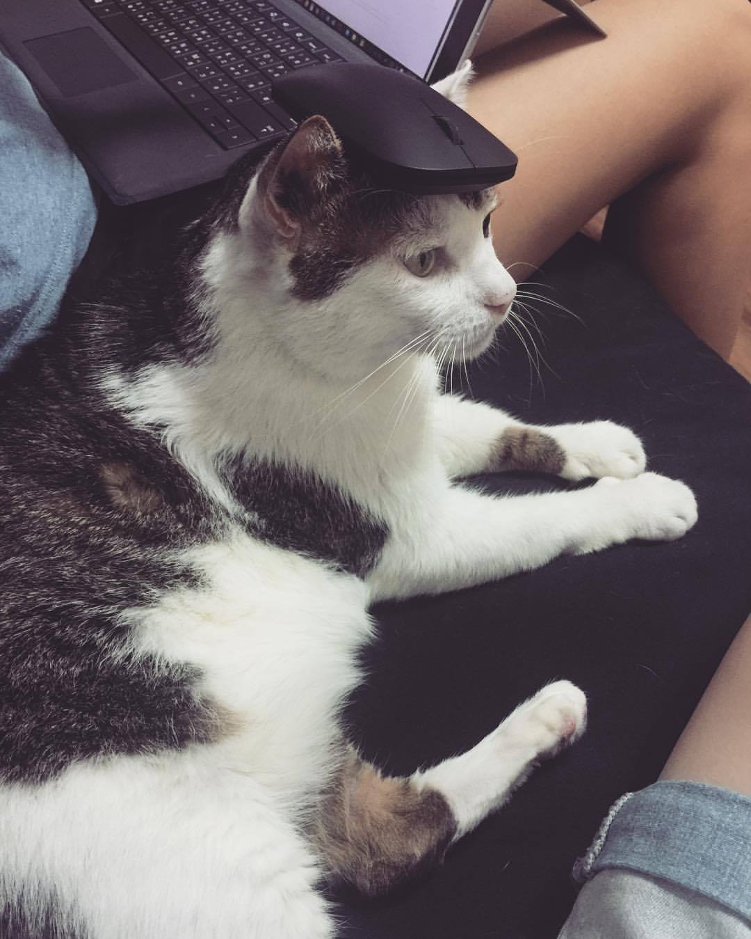 饅頭是一隻非常黏人的貓咪,而且很乖巧,生活習慣很棒,工作認真(?),目前職稱是滑鼠墊XD