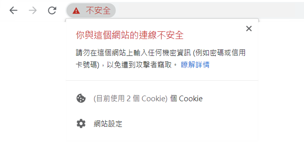 • 網站圖片、嵌入 iframe 或其他資源檔網址為 http ,以致於瀏覽器偵測為不安全