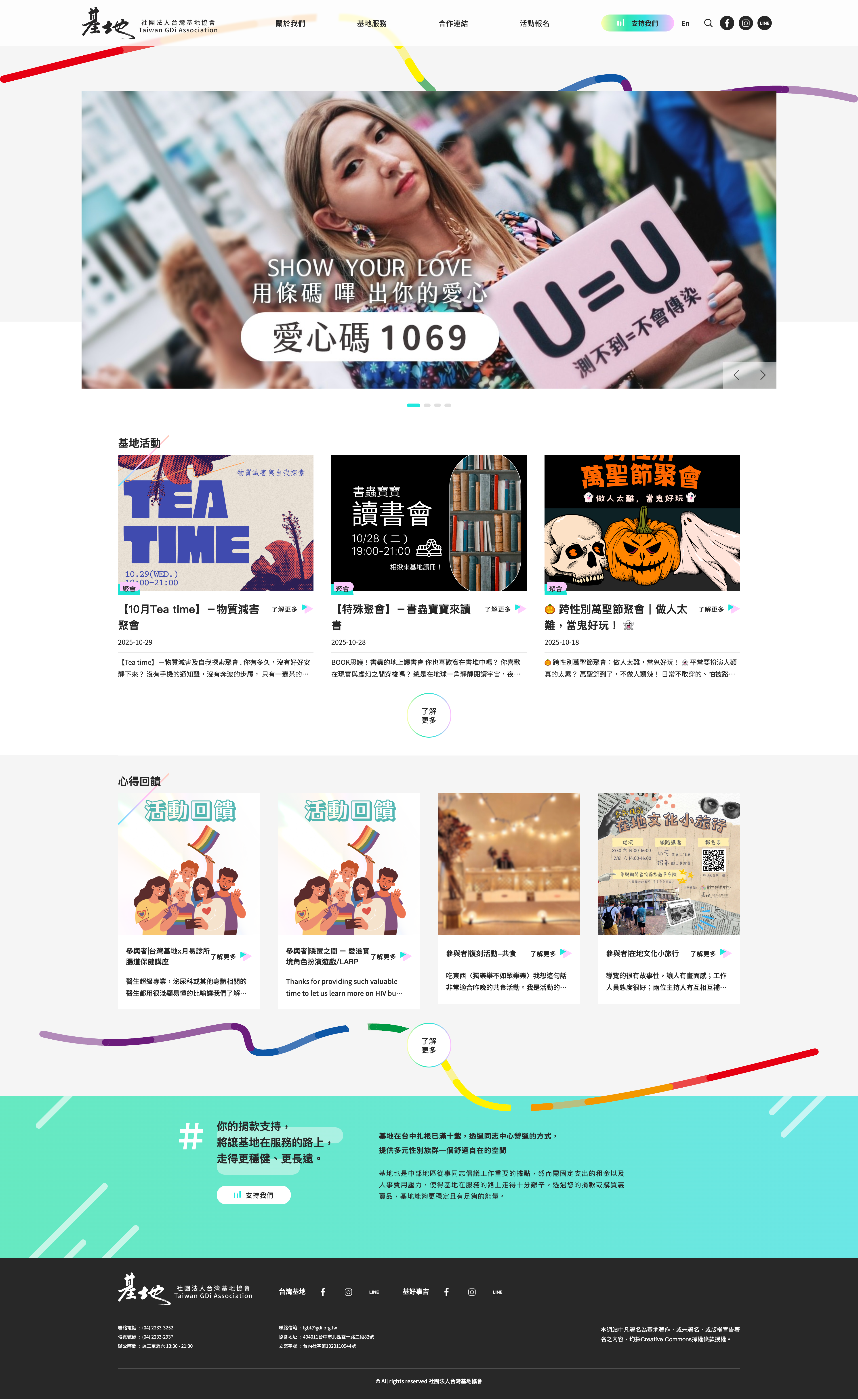 台灣基地協會扎根於台中,是中部地區從事多元性別倡議工作的重要據點,透過社區中心的營運,提供一個對於性別友善的空間,讓各種性別、性傾向與性別氣質的人都能夠感到自在與舒適。