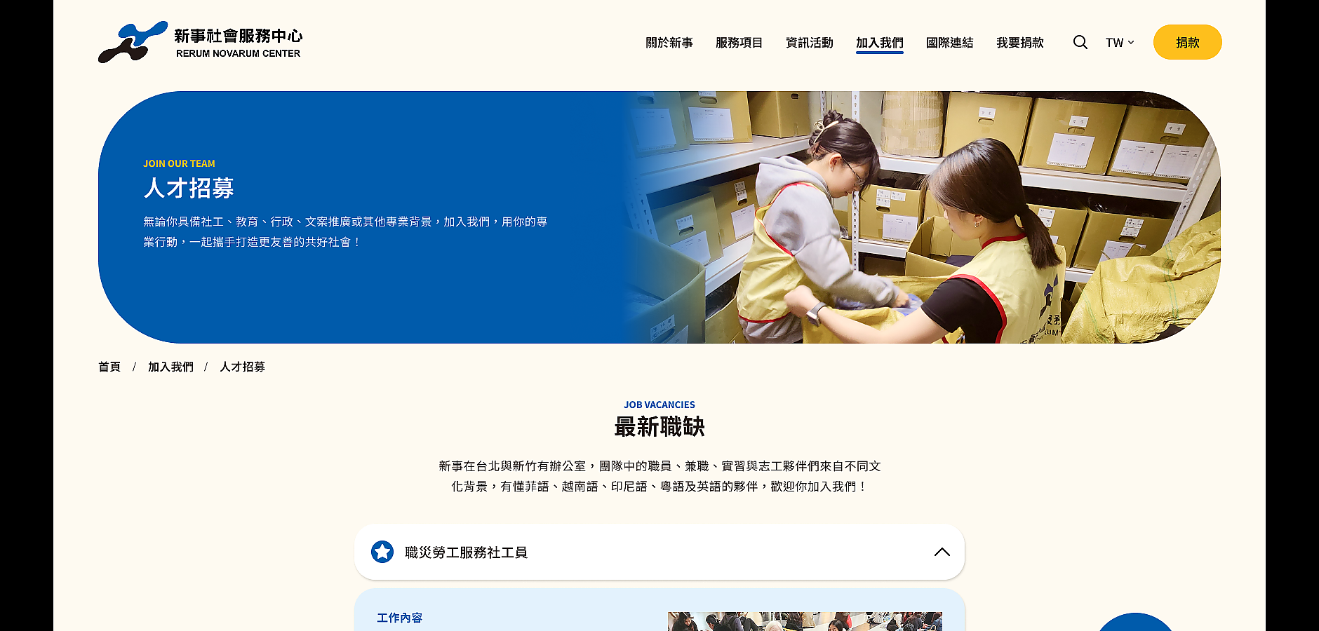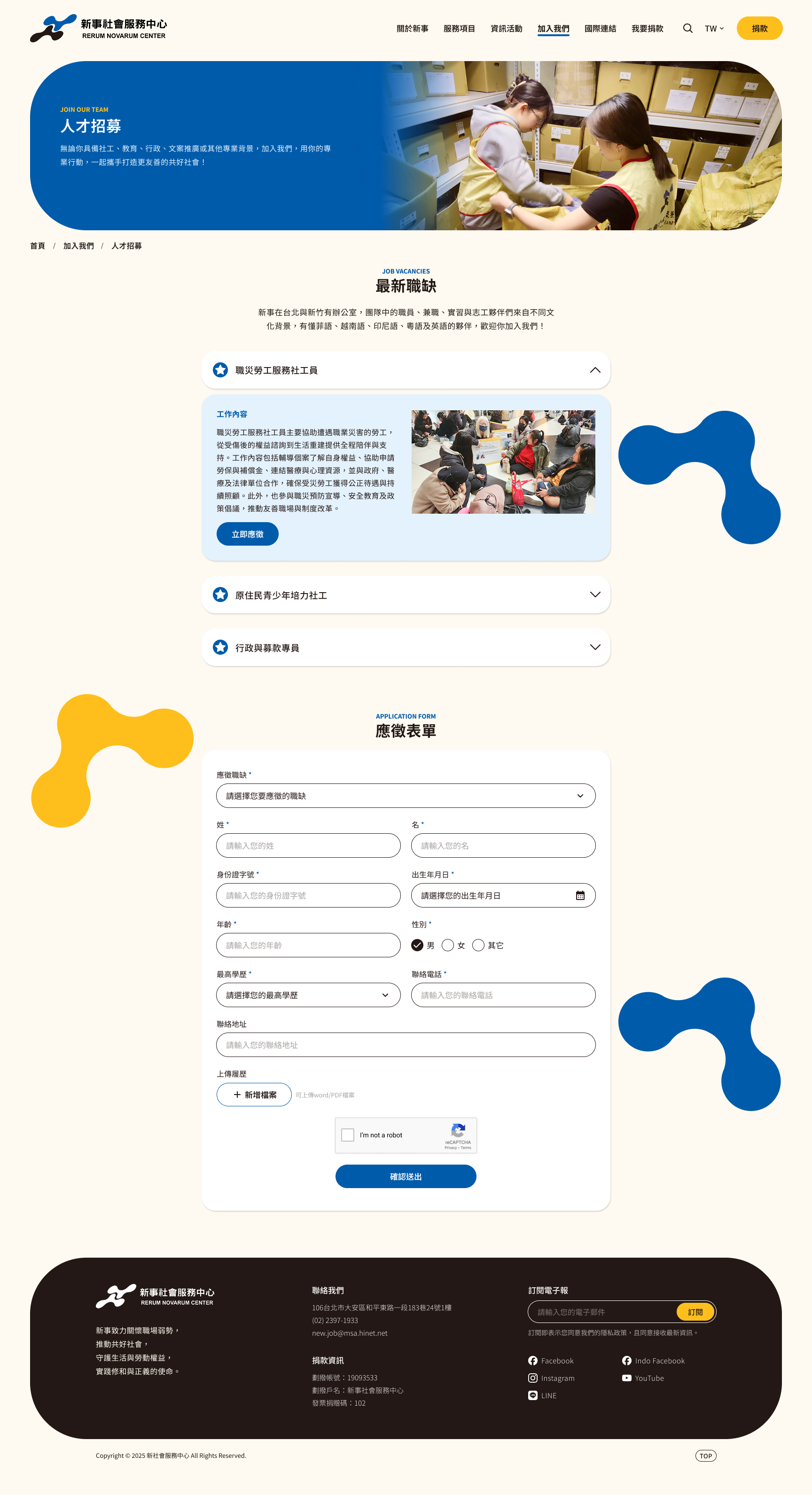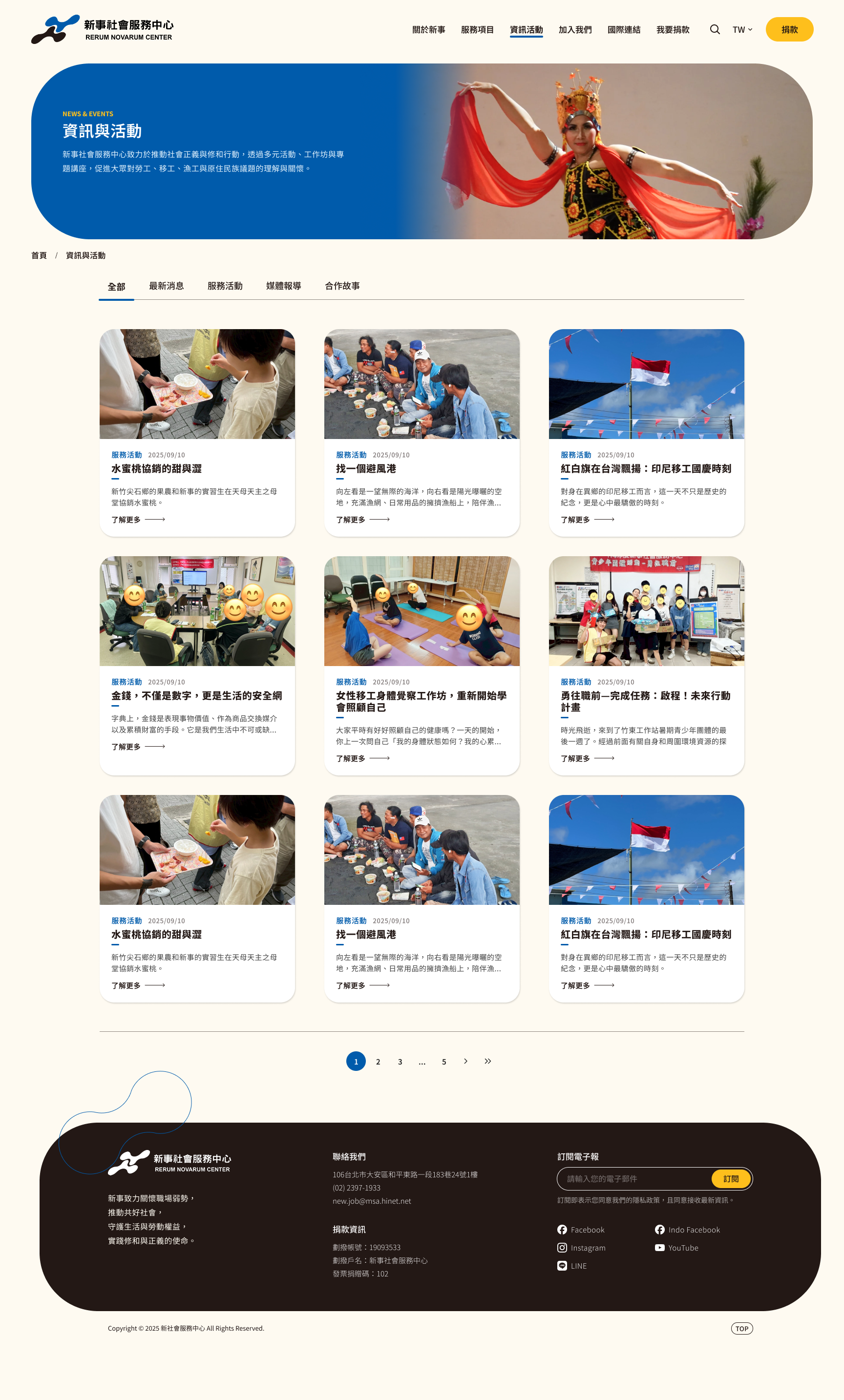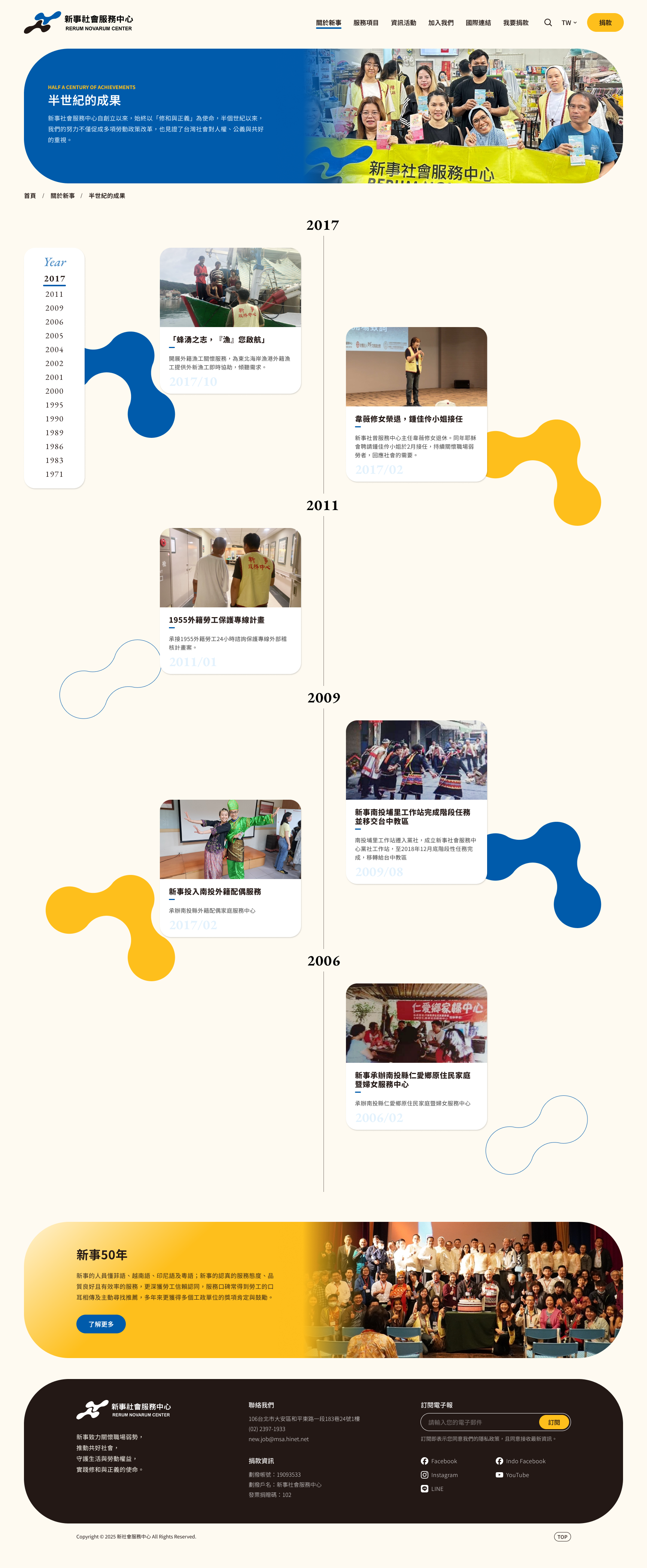 在台灣深耕已逾 50 年的新事社會服務中心,是台灣少見的為本國及外籍勞工同時提供綜合服務的民間團體,發展歷程中不僅持續提供直接服務、增強勞工權能,也同時肩負權益倡導、參與社會行動的重任,隨著多角拓展,官方網站也很需要重新定位,優化資訊溝通,展現組織成長的源源活力!