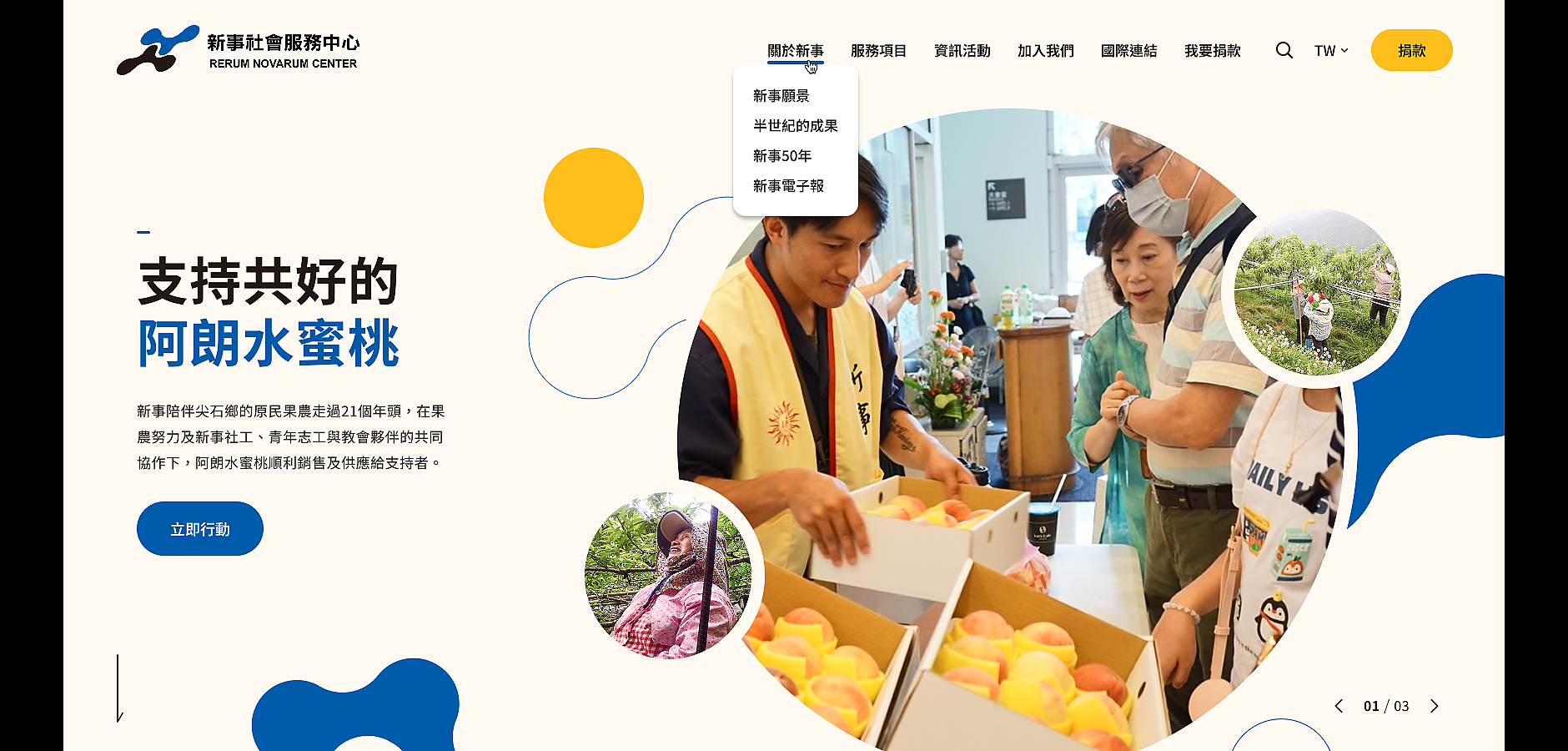 新事網站內容非常豐富,在「新事願景」、「半世紀的成果」、六大「服務項目」頁面內,都詳盡呈現了組織的願景、服務藍圖與成果,因此本次改版也討論了在主要頁面的閱讀動線上,應讓起心動念的訪客們快速連結至捐款支持或是加入志工頁面,讓網站內容的連結性更高,串聯起從認識、認同到行動的支持路徑。