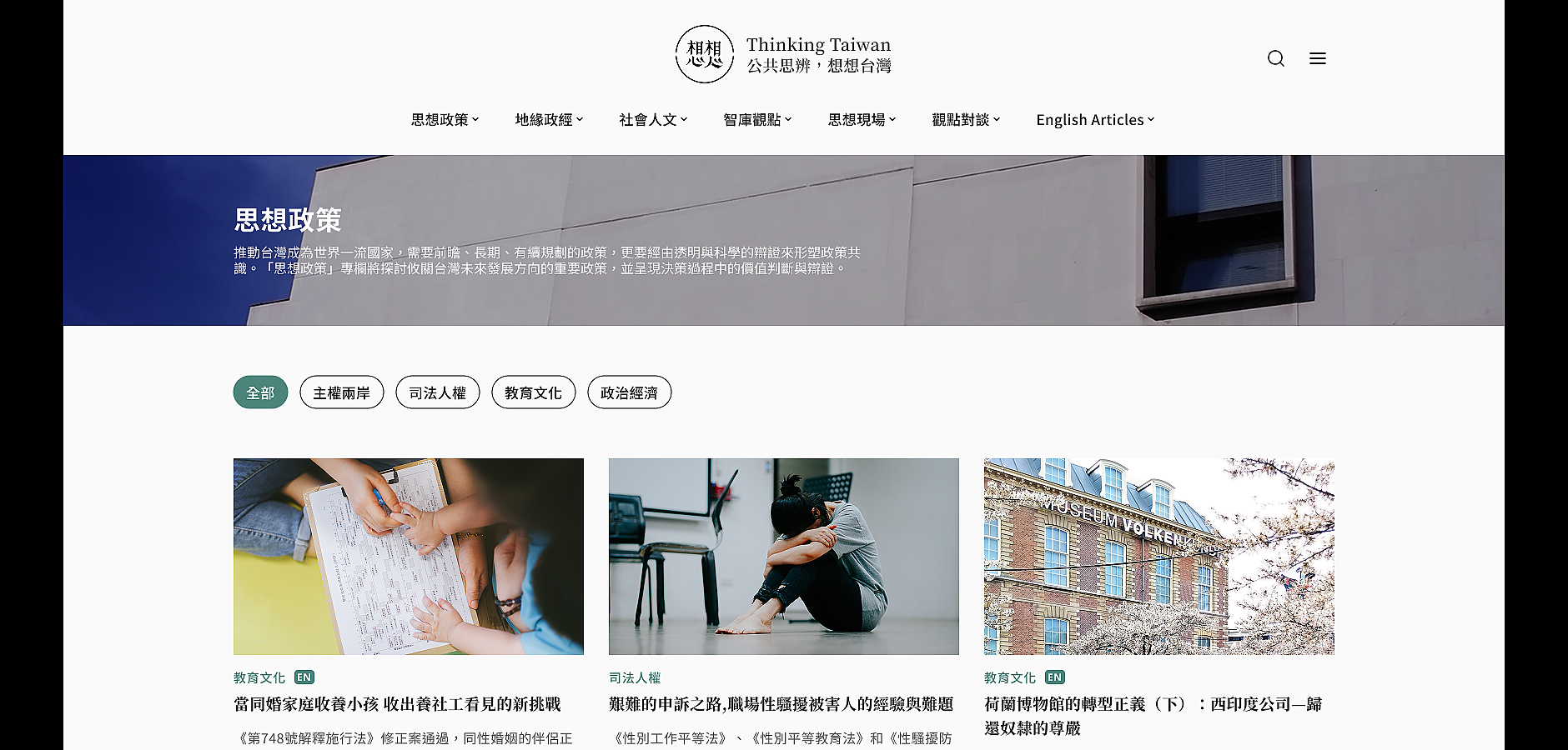 時隔9年,十分榮幸能再次參與「想想論壇」官網改版企劃,「想想論壇」由各領域專家、學者組成編輯委員會,在此激盪公共思辨、拓展社會對話,讓不同世代、不同專業的聲音都能在此交流,凝聚公共思考,為台灣想想。